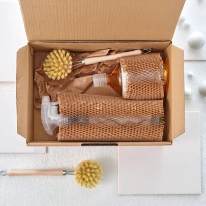 C Soaps use our Flexi-Hex Air sleeves along side paper void fill in their own ecommerce boxes