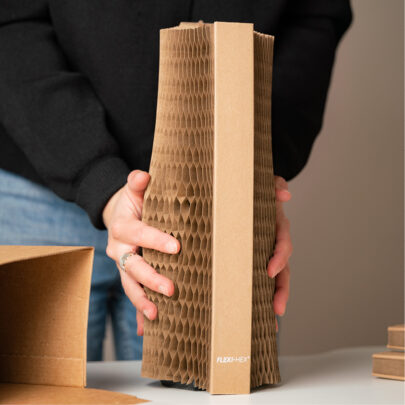 For best results, choose a snug-fitting box that matches the length of your Flexi-Hex sleeve. If there’s extra space, simply fill the gaps with paper void fill to prevent movement during transit, this helps keep the product securely in place and avoids it slipping out. Alternatively you can wrap the sleeved product in tissue paper to create a secure, cushioned pod (see here).